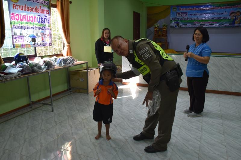 กิจกรรมให้ความรู้สร้างวัฒนธรรมความปลอดภัยในการสวมหมวกนิรภัย ของศูนย์พัฒนาเด็กเล็กบ้านหนองเฒ่า
