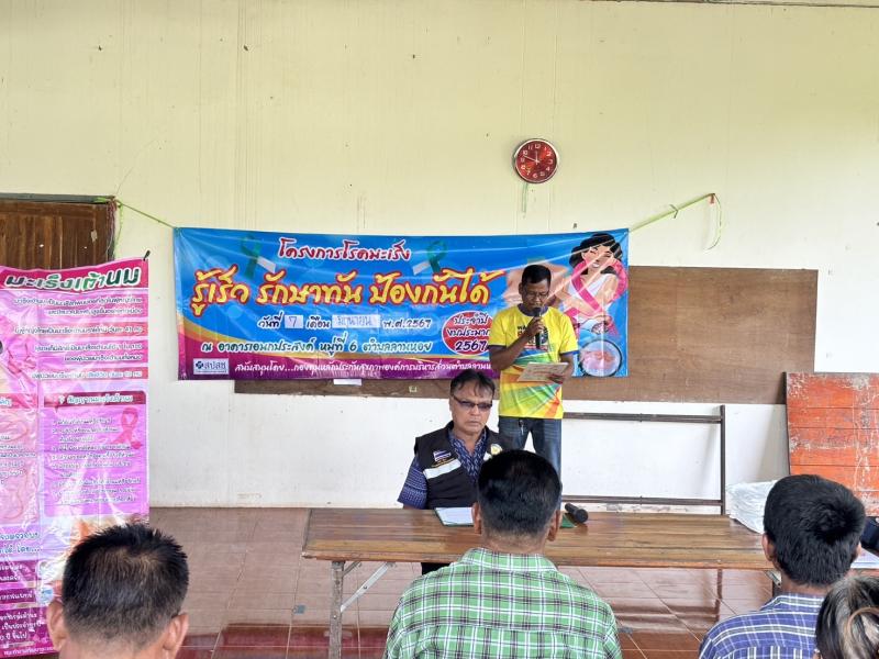 description นายประกอบ ค้อมทอง นายกองค์การบริหารส่วนตำบลลานหอย มอบหมายให้นายสนอง เข็มวง รองนายกฯ เป็นประธานเปิดโครงการโรคมะเร็ง รู้เร็ว รักษาทัน ป้องกันได้ ประจำปี 2567 พร้อมด้วยนายอมรเทพ แก้วถึง รองนายกฯ และนายฉวี เกาะกิ่ง เลขานายกฯ เข้าร่วมพิธีเปิดโครงการ ณ อาคารเอนกประสงค์ หมู่ที่ 6 บ้านวังตะแบก person admin
