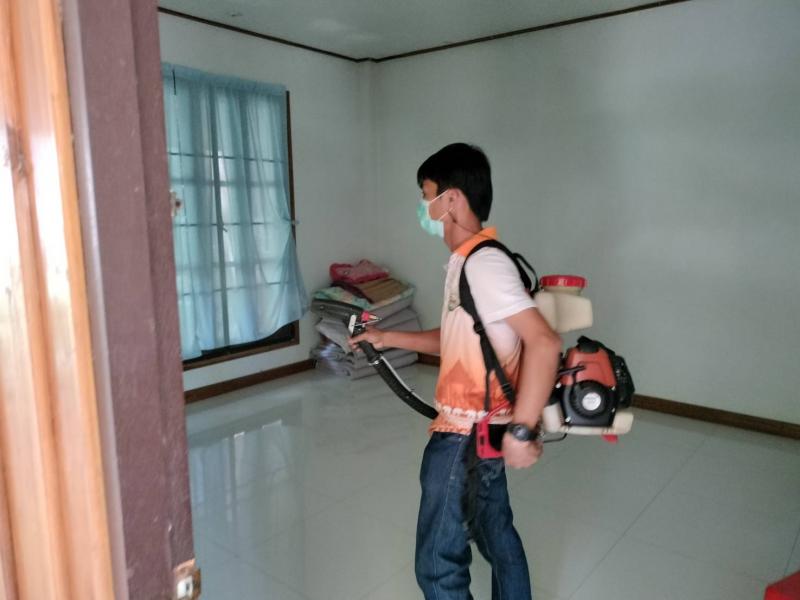 การปฏิบัติงานออกฉีดพ่นสารเคมีป้องกันโรคไข้เลือดออกในพื้นที่หมู่10 บริเวณวัดป่าบนเนิน