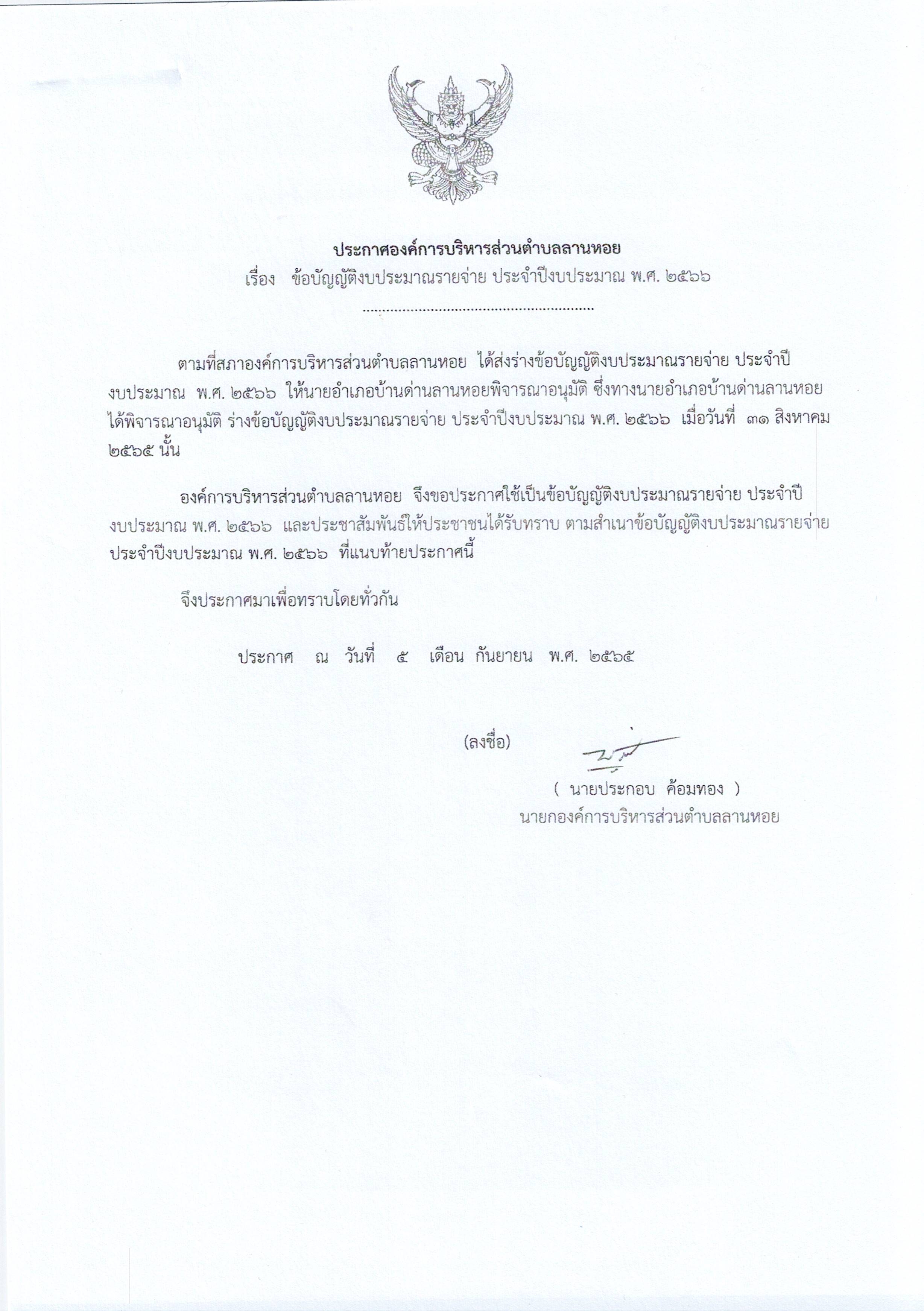 ประชาสัมพันธ์ ข้อบัญญัติงบประมาณรายจ่ายประจำปีงบประมาณ พ.ศ.2566